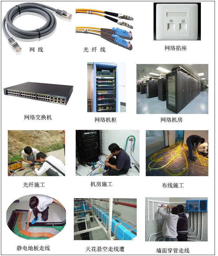 承接公司、办公室、写字楼、工厂、酒店、会所、餐厅的“综合布线"业务,内容包括: